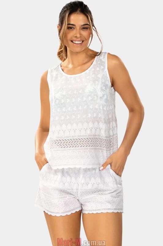 Хлопковые шорты Floral Fantasy F124E 645 Feba. Короткие пляжные шорты выполнены из очень легкого и воздушного хлопкового полотна с тонкой цветочной вышивкой и ажурными вставками на бедрах. Шорты расшиты пайетками, которые красиво переливаются на солнце, придавая изделию нарядный вид. Модель на подкладке для большего комфорта, с боковыми карманами, в поясе широкая резинка. Состав: 100% хлопок. Майка в комплект не входят. Её можно приобрести отдельно по ссылке ниже на странице, в товарах Для комплектации.