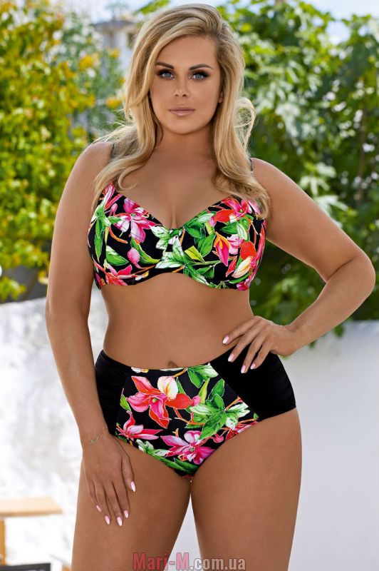 Раздельный купальник L3073 Lorin. Раздельный купальник с ярким цветочным принтом. Бюстгальтер с мягкими чашечками на косточках на подкладке из корректирующей сетки, усилен боковыми поддержками. Бретели регулируются по длине. На спине застёжка. Высокие плавки слипы на стрейч-подкладке, с широкими бочками с небольшой драпировкой.