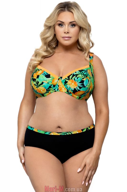 Раздельный купальник L3090 Lorin. Бюстгальтер с ярким тропическим принтом, с мягкими чашками на каркасах, с дополнительными боковыми поддержками, на подкладке из корректирующей сетки. Благодаря боковой корректирующей детали и моделирующим разрезам, бюстгальтер хорошо собирает грудь к центру, поддерживает и придает естественную форму. Широкие бретели не отстегиваются, регулируются по длине. На спине застежка. Однотонные плавки слипы с высокой посадкой и широкими боками декорированы принтованным кантом в тон бюстгальтеру, на стрейч-подкладке спереди. Состав: 85% полиамид, 15% эластан.