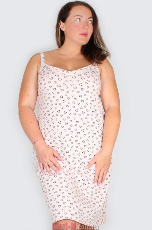 Пудровая хлопковая сорочка на тонких бретелях 0101-7 Bahar. Ночная сорочка выполнена из мягкого хлопкового трикотажа с принтом в сердечки. Модель на тонких регулируемых бретелях, с V-образным вырезом. Состав: 95% хлопок, 5% эластан.