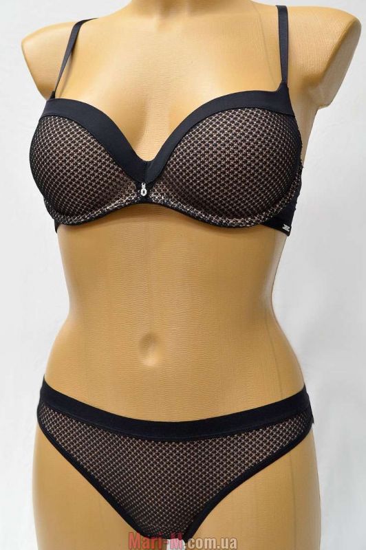Комплект белья: бюстгальтер push-up и стринги 9375 Balaloum. Элегантный комплект женского белья с оригинальной отделкой сеточкой. Бюстгальтер с формованными чашечками пуш-ап, без каркасов. Бретельки не отстегиваются, регулируются по длине, снабжены крючком для соединения на спине. В комплекте трусики стринги. Передняя часть трусиков выполнена из нежной сеточки, задняя деталь гладкая. ВАЖНО! Позиция без брака. Скидка временная, распространяется на избранные цвета и размеры. Количество товара по скидке ограничено.