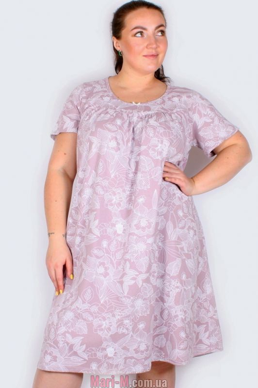Хлопковая ночная сорочка 1298-09 N.EL. Ночная сорочка выполнена из очень мягкого и приятного хлопкового трикотажа с набивным цветочным принтом. Модель свободного кроя, с короткими рукавами и круглым вырезом горловины. Состав: 100% хлопок.