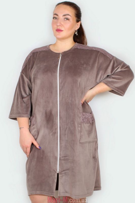 Велюровый халат на молнии с кружевом 1338-53 N.EL