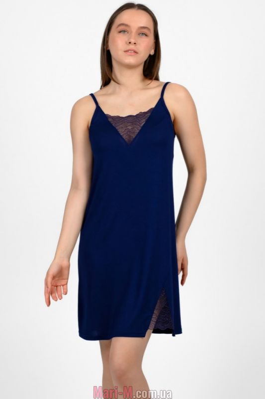 Ночная сорочка из вискозы с кружевными вставками 1613-92 N.EL. Сорочка выполнена из мягкого вискозного трикотажа, украшена треугольными вставками из нежного ажурного кружева в зоне декольте и сбоку на подоле. Модель на тонких регулируемых бретелях. Состав: 96% вискоза, 4% эластан.