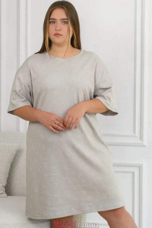 Хлопковая туника 1632-19 N.EL. Туника выполнена из очень мягкого и приятного эластичного хлопкового трикотажа в рубчик с чуть заметным тонким принтом. Модель свободного кроя, с рукавом ½ и круглым вырезом горловины. Состав: 100% хлопок.