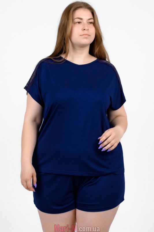 Пижама из вискозы с кружевными вставками 1727-92 N.EL. Пижама выполнена из мягкого вискозного трикотажа. В комплект входит свободная футболка с короткими цельнокроеными рукавами и круглым вырезом горловины и короткие шорты на мягкой резинке в поясе. Футболка украшена вставками из нежного кружева на плечах. Состав: 96% вискоза, 4% эластан.