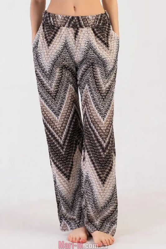 Домашние брюки из вискозы 410052 Vienetta. Удобные пижамные брюки свободного кроя, с широкой мягкой резинкой в поясе и боковыми карманами. Выполнены из легкого и приятного неэластичного вискозного полотна с интересным графичным принтом. Подходят как для сна, так и для отдыха дома. Состав: 100% вискоза.
