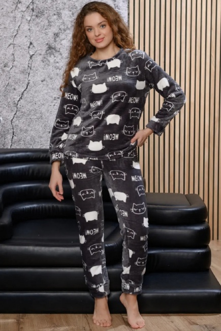 Графитовая пижама из велсофта с принтом 5020-6 Bahar