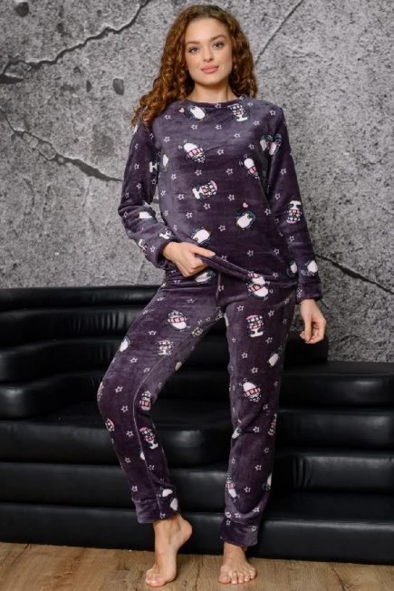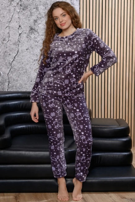 Отзывы о товаре Графитовая пижама из велсофта с принтом 5020-6 Bahar