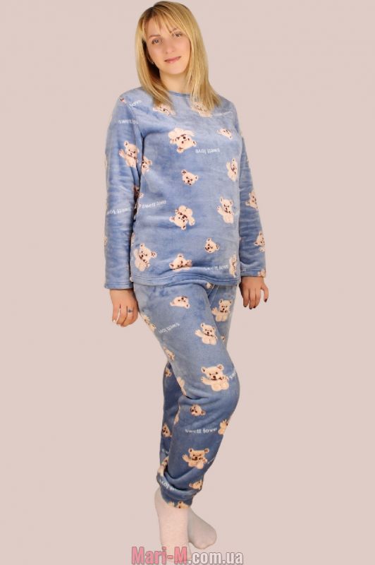 Теплая пижама из велсофта 550-42 N.EL. Теплая женская пижама из трикотажной ткани с очень мягким и густым ворсом. В комплект входит кофта с длинными рукавами и неглубоким круглым вырезом и прямые брюки на мягкой резинке в поясе. Штанины с широкими манжетами. Состав: 100% полиэстер.
