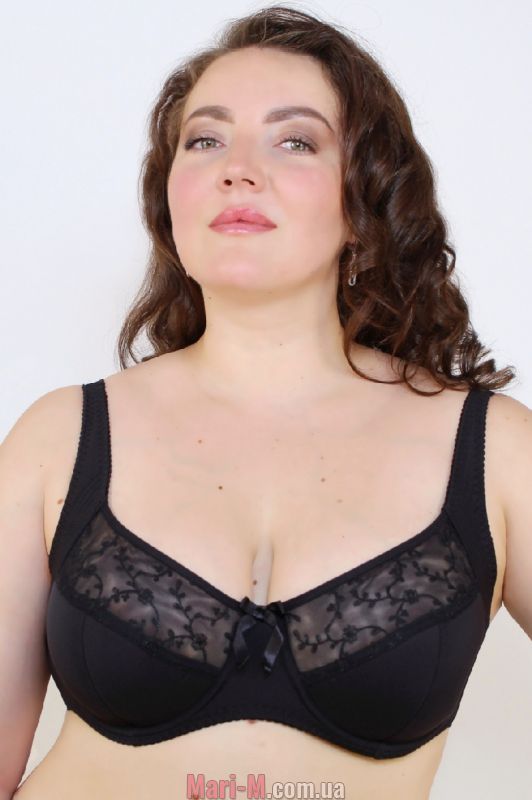 Бюстгальтер с дублированной нижней частью 6463 Acousma. Элегантный бюстгальтер из гладкого эластичного трикотажного полотна, украшенный вышивкой на чашках. Чашки на каркасах, сшивные, с боковой корректирующей деталью. Нижняя часть чашек и боковая панель продублированы тонким поролоном на хлопковом подкладе изнутри, верхняя деталь выполнена из двойной микросетки с тонкой цветочной вышивкой. Бретели несъемные, спереди расширенные, сзади регулируются по длине. Пояс гладкий. Боковые детали укреплены вертикальными косточками. Маечный тип стана. На спине застежка на 2 крючка. Состав: 90% нейлон, 10% спандекс.