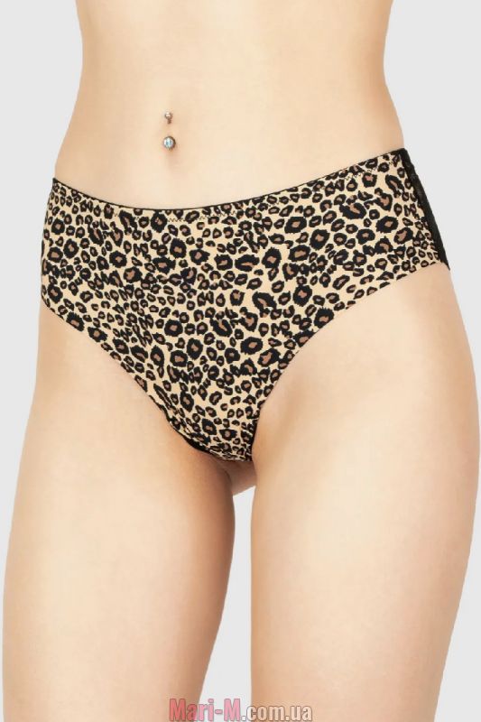 Трусики стринги с кружевом 6501-1Т Acousma. Трусики выполнены из гладкого эластичного трикотажного полотна с лазерной обрезкой края по нижним срезам и эффектным анималистичным принтом спереди, задняя деталь из мягкого ажурного кружева с волнистым краем. Средняя линия талии. Хлопковая ластовица. Состав: 90% нейлон, 10% спандекс.