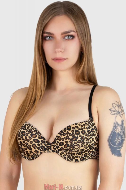 Бюстгальтер с формованными чашками 6566 Acousma. Стильный бюстгальтер с формованными чашками из тонкого поролона. Выполнен из гладкой микрофибры с леопардовым принтом. Чашки на каркасах. Бретели съемные, с регулировкой по длине. Боковые детали гладкие. На спине трехступенчатая застежка на два крючка. Состав: 89% нейлон, 11% спандекс.