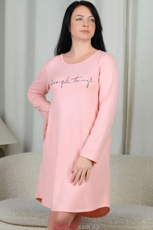 Туника с длинными рукавами 741-1-96 N.EL. Туника выполнена из теплого, мягкого и приятного трикотажа. Модель прямого свободного кроя, с длинными рукавами и круглым вырезом горловины. Украшена принтом-надписью на груди. Спинка удлиненная. Состав: 90% микрофибра, 10% полиэстер.