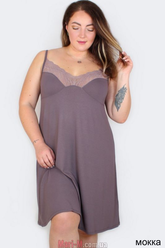 Ночная сорочка из вискозы с кружевом 789-92 N.EL. Сорочка выполнена из мягкого вискозного трикотажа и украшена нежным кружевом по линии декольте. Модель на тонких регулируемых бретелях. Состав: 92% вискоза, 8% эластан.