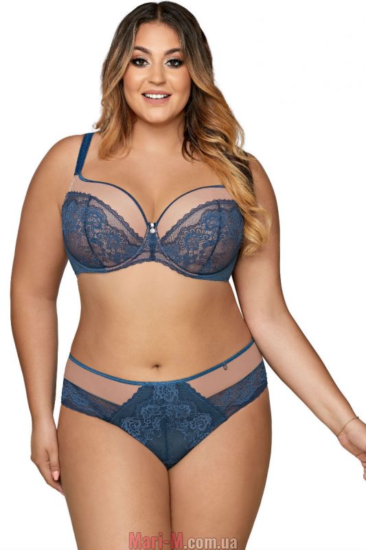 Бюстгальтер с дублированной чашкой full cup 1846 Blue Iris Ava. Стильный и элегантный уплотненный бюстгальтер выполнен из материала натурального бежевого цвета в сочетании с ажурным кружевом синего оттенка. Бюстгальтер хорошо поддерживает и приподнимает грудь, придает красивую овальную форму. Чашки полностью уплотненные, внутри продублированы хлопковой тканью. Бретели несъемные с регулятором длины. Боковые детали без вертикальных косточек. Сзади 3-уровневая застежка крючки. Состав: 88% полиамид, 8% хлопок, 4% эластан.