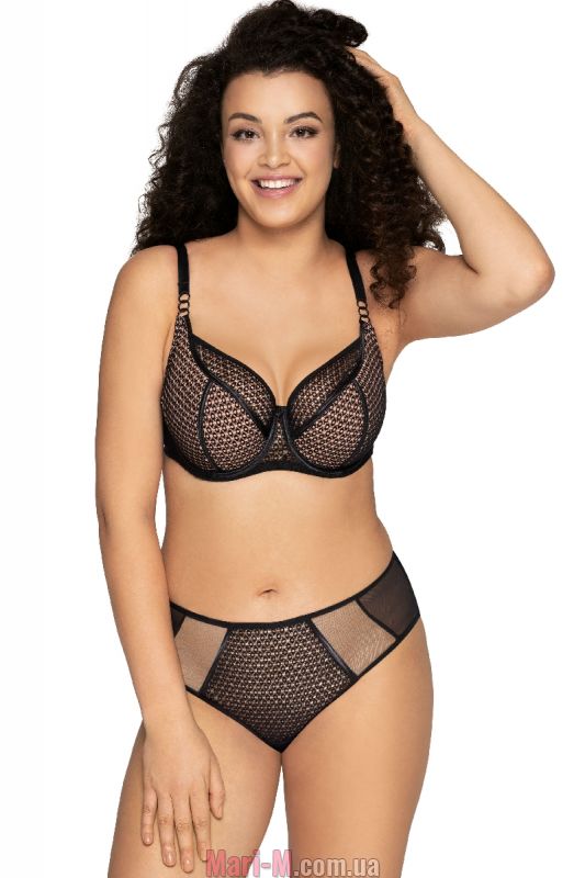 Бюстгальтер с дублированной чашкой semi soft AV1963 All Illusion Ava. Элегантный и очень удобный бюстгальтер на основе популярной модели Ellice (K-925). Чашки на каркасах, сверху покрыты черным кружевом с геометрическим узором, в нижней части уплотнены бежевым поролоном с хлопковой подкладкой внутри. Верхняя деталь на подкладке из бежевой стабилизирующей сеточки. Бретели несъемные с регулятором длины, их ширина зависит от размера. Спинка гладкая, боковые детали без вертикальных косточек. Сзади 3-уровневая застежка на крючки. Модель хорошо собирает, приподнимает и поддерживает грудь, обеспечивая 100% комфорт. Состав: 88% полиамид, 8% хлопок, 4% эластан.