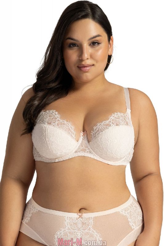 Кружевной бюстгальтер с дублированной нижней частью AV 2147 Blossom Ava. Очень нежный и чувственный бюстгальтер с дублированными чашками на каркасах выполнен из тонкого ажурного цветочного кружева с волнистым краем и ресничками. Чашки сшивные, глубокие, с тройным диагональным членением. Нижняя часть продублирована тонким поролоном на хлопковом подкладе. Верхняя деталь – прозрачная двойная микросеточка с плоским бесшовным краем и кружево. Невидимая сеточка в верхней части привлекает внимание к зоне декольте и придает модели легкость и воздушность. Пояс спереди кружевной, спинка гладкая, из функционального сетчатого полотна. Мост между чашечками декорирован миниатюрным атласным бантиком с золотистой подвеской-капелькой. Бретели не отстегиваются, регулируются по длине, их ширина зависит от размера. На спине трехступенчатая застежка на крючки. Бюстгальтер на базе популярной модели K-1030 хорошо поддерживает и собирает грудь больших и средних размеров, придает ей красивую округлую форму. Состав: 88% полиамид, 8% хлопок, 4% эластан.