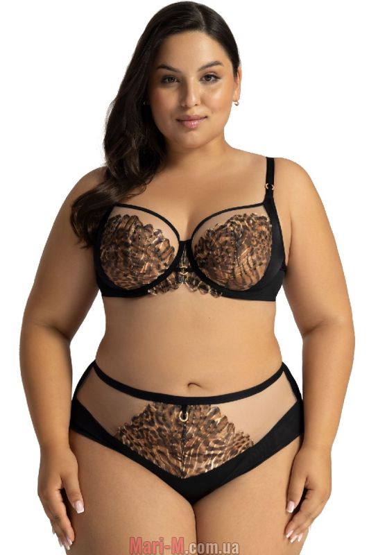 Бразилианы с кружевом AV 2144/B Liana Ava. Трусики выполнены из гладкой эластичной микрофибры черного цвета в сочетании с прозрачной телесной микросеткой на передней детали. Спереди украшены эффектным кружевом с анималистичным принтом и вышивкой. На пояснице вставка из узорной микросетки. Нижние срезы отделаны двойной черной микросеткой с плоским бесшовным краем. Тонкая плоская резинка в поясе. Спереди на поясе декор в виде фактурного золотистого колечка на тонком ремешке. Комфортные плоские швы. Хлопковая ластовица. Состав: 91% полиамид, 5% хлопок, 4% эластан.