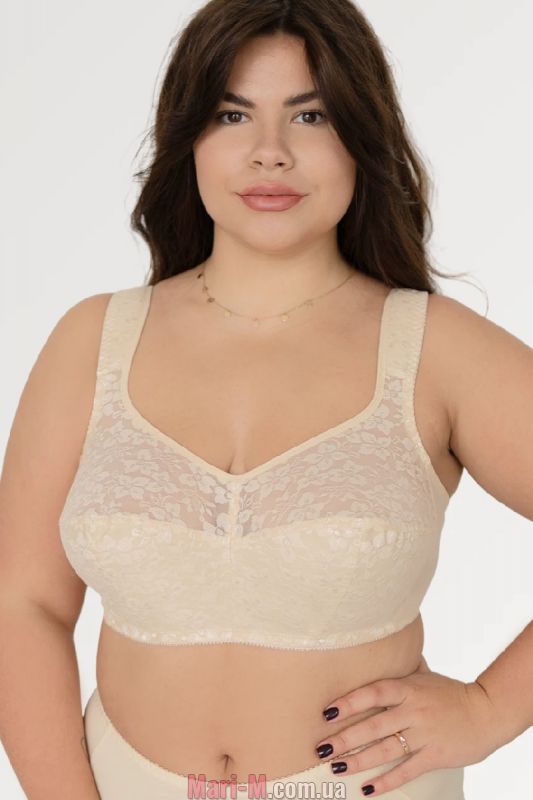 Бюстгальтер с мягкими чашками без каркасов 1410 Elita. Бюстгальтер без косточек с мягкими чашками и поддерживающими широкими бретелями. Чашки сшивные, с тройным членением, выполнены из неэластичного кружевного полотна, внутри продублированы поплином. Боковые детали выполнены из гладкого эластичного сетчатого полотна. Бретели спереди широкие, дублированные, сзади регулируются по длине. На спине застежка на крючки. Рисунок кружева может отличаться от фото. Если необходим комплект с трусиками в одном кружеве, обязательно указывайте это в комментариях при заказе.