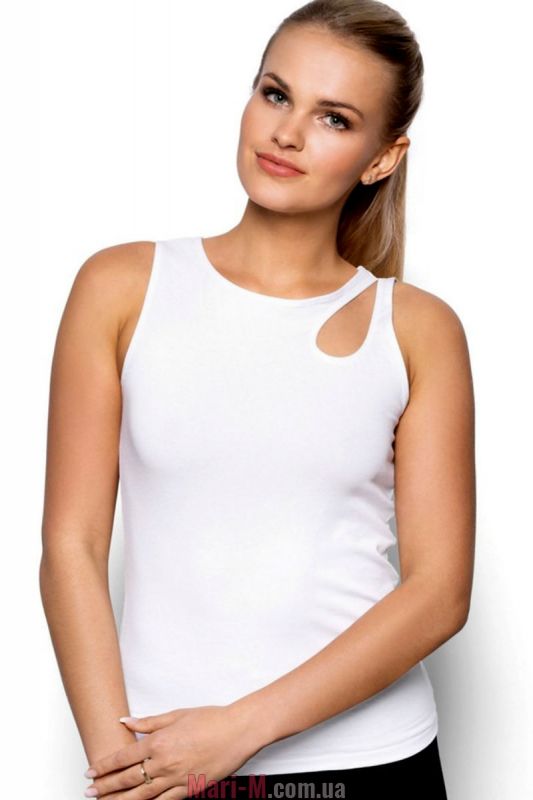 Хлопковая спортивная майка Axa Eldar. Спортивная майка на широких бретелях выполнена из высококачественной приятной к телу хлопковой ткани. Модель приталенного фасона, подчеркивающего фигуру, с неглубоким круглым вырезом горловины. Декорирована оригинальными вырезами в форме капли на плече. Состав: 95% хлопок, 5% эластан.