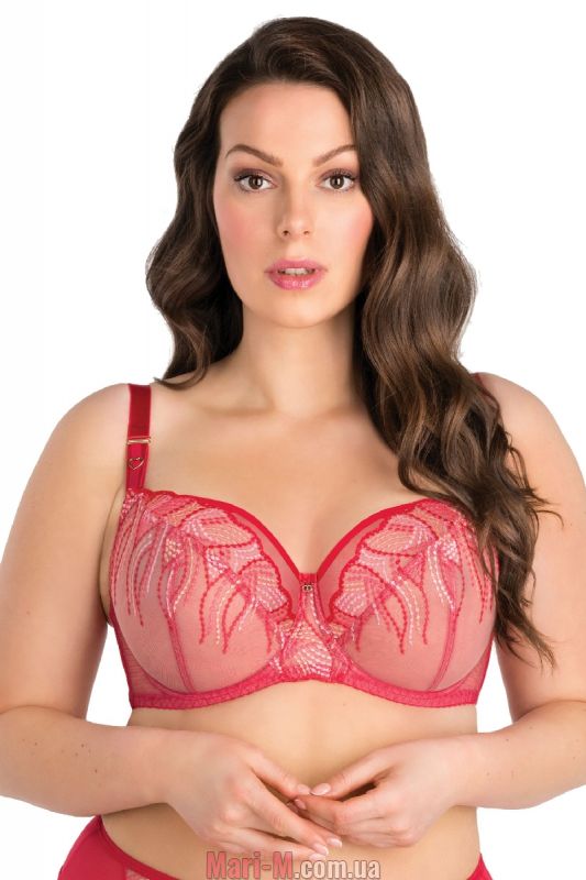 Мягкий бюстгальтер с вышивкой К-828 Crazy heart Gorsenia. Очаровательный бюстгальтер с мягкими чашками в ярко-алом цвете, украшенный эффектной многоцветной вышивкой. Чашки на каркасах, сшивные, глубокие, с тройным членением. Выполнены из прочной прозрачной микросетки, отделаны узкими кантами. Чашки и мост украшены вышивкой. По линии декольте отделка узким эластичным кантом для лучшего прилегания. Бретели декорированы золотистыми пряжками в форме сердечек. Спинка гладкая, из функционального сетчатого полотна. Боковые детали укреплены вертикальными косточками. Бретели не отстегиваются, регулируются по длине, их ширина зависит от размера. На спине застежка на 2/3 крючка в зависимости от размера. Бюстгальтер хорошо поддерживает и стабилизирует грудь больших и средних размеров, придает ей красивую округлую форму. Состав: 90% полиамид, 7% эластан, 3% полиэстер.