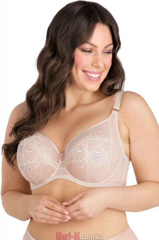 Мягкий бюстгальтер с вышивкой К-855 Just Gorsenia. Элегантный, очень женственный и комфортный бюстгальтер с мягкими чашками, украшенный изысканной тонкой вышивкой. Выполнен из прочной стабильной микросетки. Чашки на каркасах, сшивные, с боковой корректирующей деталью. По верхнему краю отделка узким эластичным кантом для лучшего прилегания. Чашки и мост декорированы вышивкой. Между чашками миниатюрный атласный бантик с декором в виде колечка цвета розового золота. Спинка гладкая, из функционального сетчатого полотна. Боковые детали укреплены вертикальными косточками. Декоративные бретели не отстегиваются, регулируются по длине, их ширина зависит от размера. На спине застежка на 2/3 крючка в зависимости от размера. Бюстгальтер отлично поддерживает грудь больших и средних размеров, собирает ее к центру и придает красивую округлую форму. Состав: 90% полиамид, 7% эластан, 3% полиэстер.