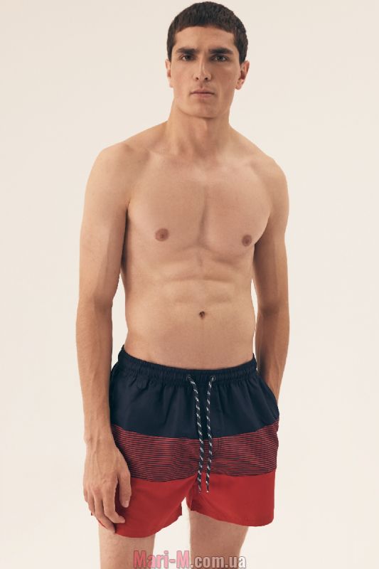 Пляжные шорты Rival 42609-33X Henderson. Короткие мужские пляжные шорты свободного кроя. Изготовлены из приятного на ощупь быстросохнущего материала в сочетании темно-синего и красного цветов. Широкий эластичный пояс со шнурком на кулиске позволяет индивидуально регулировать размер. По бокам удобные карманы. Шорты имеют вшитые внутренние трусики из мягкой сетки. Состав: 100% полиэстер.