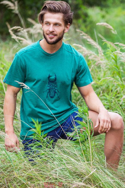 Мужская хлопковая пижама МNS 741 A21 Key. Стильная мужская пижама из высококачественного мягкого натурального хлопка. В комплект входит однотонная футболка и шорты. Футболка с короткими рукавами и неглубоким V-образным вырезом горловины, декорирована принтом на передней полочке. Шорты прямые, с мягкой резинкой в поясе. Состав: 100% хлопок.