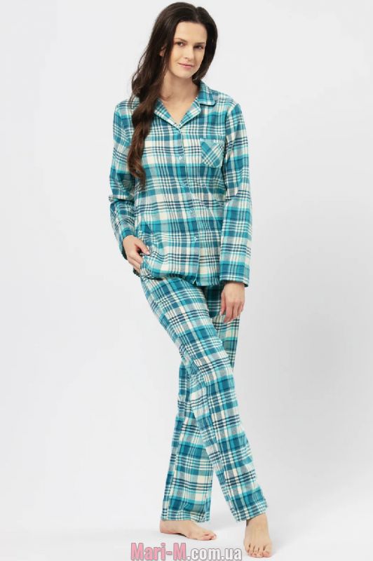 Фланелевая женская пижама LNS 471 B24 Key. Комфортная женская пижама из мягкого и теплого высококачественного натурального хлопка в клетчатый принт. В комплект входит рубашка с длинными рукавами и прямые свободные брюки на мягкой резинке в поясе. Рубашка классического кроя, с отложным воротничком, застегивается на пуговицы спереди, декорирована нагрудным кармашком. Полочки, воротник и карман отделаны узким кантом в тон. Брюки дополнены удобными боковыми карманами. Состав: 100% хлопок (фланель).