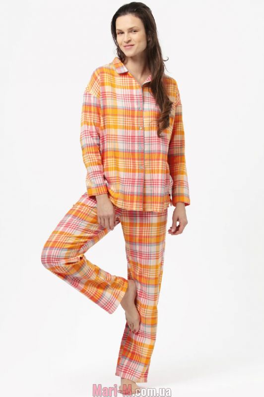 Фланелевая женская пижама LNS 473 B24 Key. Комфортная женская пижама из мягкого и теплого высококачественного натурального хлопка в клетчатый принт. В комплект входит рубашка с длинными рукавами и прямые свободные брюки на мягкой резинке в поясе. Рубашка свободного кроя, с отложным воротничком, застегивается на пуговицы спереди, длинные рукава со спущенной плечевой линией. Полочки, воротник и карман отделаны узким кантом в тон. Брюки дополнены удобными боковыми карманами. Состав: 100% хлопок (фланель).