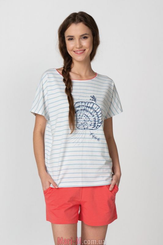 Легкая хлопковая пижама LNS 704 A22 Key. Летняя пижама из нежного и дышащего хлопкового трикотажа. Свободная футболка с коротким рукавом и шорты с карманами по бокам, на мягкой резинке. Состав: 95% хлопок, 5% эластан.