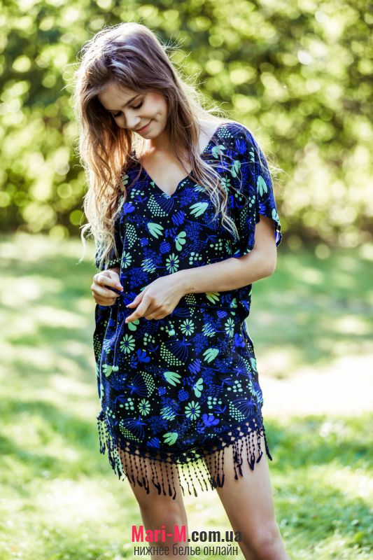 - легкая короткая туника с декольте в форме буквы "V" спереди и сзади;