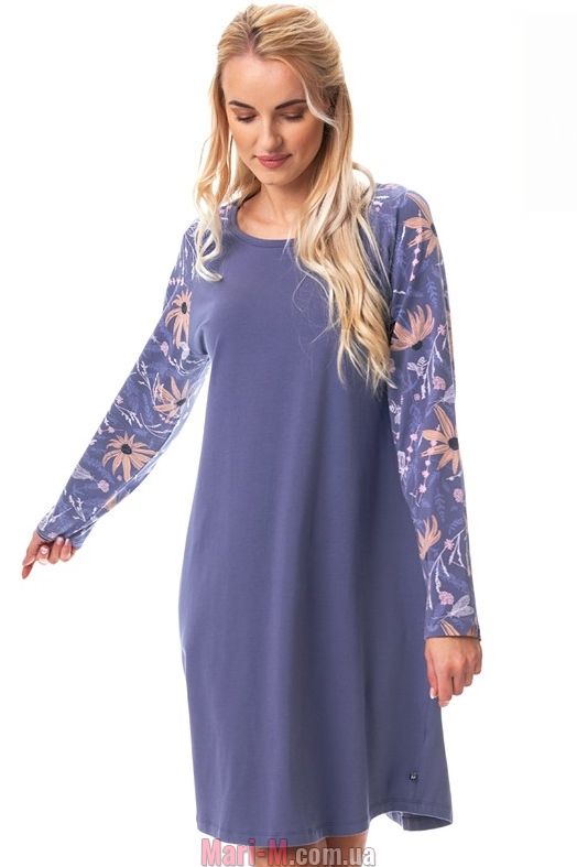 Хлопковая ночная сорочка LND 252 B23 Key. Удобная ночная сорочка из мягкого и приятного хлопкового трикотажа. Модель свободного кроя, средней длины, с длинными рукавами-реглан. Полочки выполнены из однотонного материала, рукава - из ткани с цветочным принтом. Состав: 95% хлопок, 5% эластан.