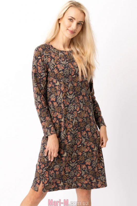 Хлопковая ночная сорочка LND 785 B24 Key. Удобная ночная сорочка из мягкого и приятного хлопкового трикотажа с набивным принтом в виде веточек рябины по всему полотну. Модель свободного кроя, средней длины, с длинными рукавами и неглубоким круглым вырезом горловины. Состав: 95% хлопок, 5% эластан.