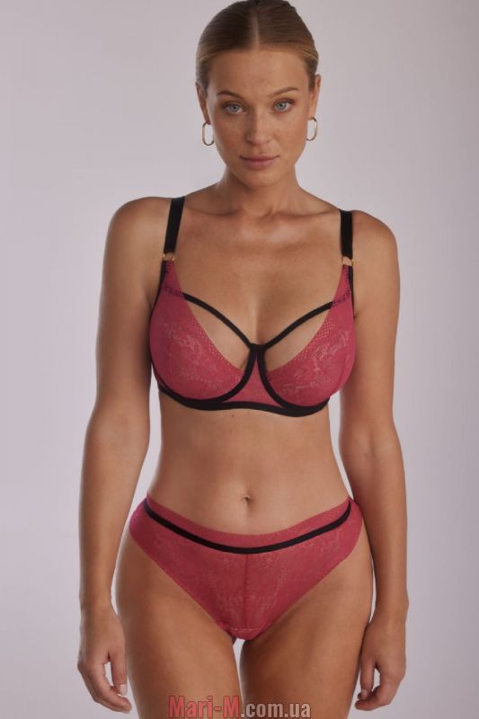 Кружевные бразилианы P-1119/3 Rozie Kinga. Трусики выполнены из очень мягкого и нежного эластичного цветочного кружева в насыщенном цвете фуксии, декорированы контрастным черным кантом по поясу. Бесшовные плоские края, плоские комфортные швы. Хлопковая гигиеническая ластовица.