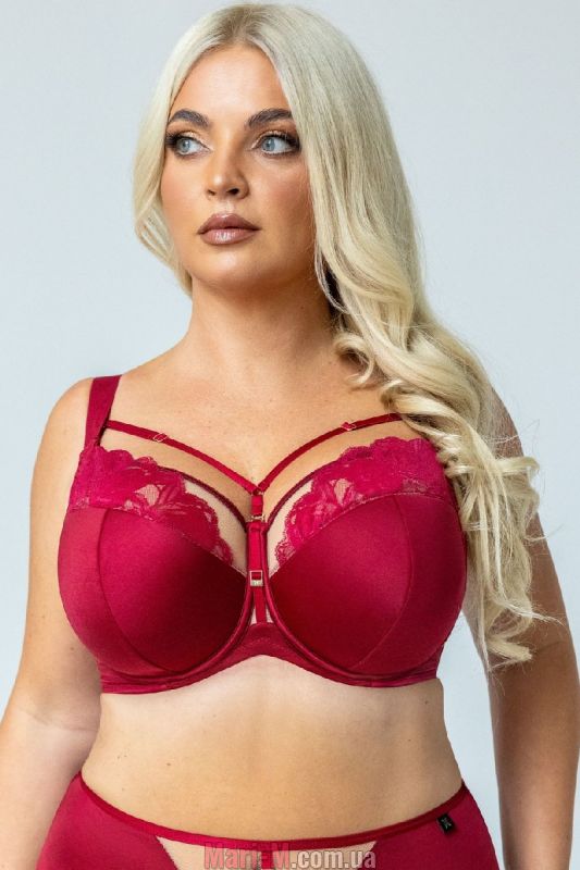 Бюстгальтер с дублированной чашкой semi soft side support G-Cherry Kris Line. Эффектный бюстгальтер в насыщенном вишневом цвете. Чашки на каркасах, с тройным диагональным членением и боковой корректирующей деталью в районе проймы. Нижняя часть чашек и боковая деталь продублированы тонким поролоном на хлопковом подкладе, сверху покрыты гладкой микрофиброй. Верхняя деталь чашек выполнена из прозрачной телесной микросетки с эластичным контрастным вишневым кантом по краю и нежного цветочного кружева с фигурным краем. Зона декольте подчеркнута съемными регулируемыми стрепами. Пояс изготовлен из гладкой эластичной микрофибры. Боковые детали укреплены вертикальными косточками. Между чашками вставка из телесной микросетки и ремешок с золотистой пряжкой. Бретели оптимальной ширины, регулируются по длине, не отстегиваются. На спине застежка на крючки. Благодаря боковой панели, бюстгальтер хорошо стабилизирует, собирает и приподнимает грудь больших и средних размеров. При правильном подборе размера и регулировке бретелей модель маскирует асимметрию груди. Состав: 80% полиамид, 10% эластан, 5% полиэстер, 5% хлопок.