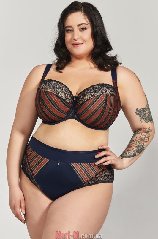 Мягкий кружевной бюстгальтер soft side support G-Elizabeth Kris Line. Изысканный бюстгальтер с мягкими чашками выполнен из сетчатого полотна с сине-красными полосами и золотистой нитью и ажурного темно-синего цветочного кружева. Чашки на каркасах, с дополнительной корректирующей деталью в районе проймы, на подкладке из стабилизирующей сеточки. Пояс изготовлен из гладкой эластичной микрофибры. Декоративные бретели оптимальной ширины, регулируются по длине, не отстегиваются. Благодаря специально разработанной боковой панели, бюстгальтер хорошо собирает и приподнимает грудь. Стильная и элегантная модель для средней и большой груди. Состав: 80% полиамид, 10% эластан, 5% полиэстер, 5% хлопок.