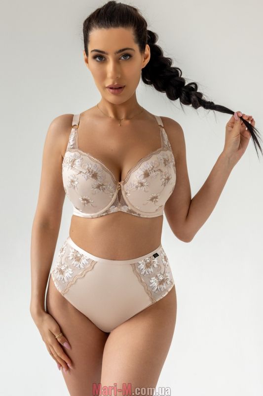 Высокие бразилианы с вышивкой stringo szorty hight waist G-Pure Kris Line. Трусики выполнены из гладкой бежевой микрофибры, по бокам передней детали украшены вставками из прозрачной телесной микросетки с изысканной цветочной вышивкой в нежном лиловом оттенке с серебристой люрексовой нитью. Задняя деталь из двойной микрофибры с плоскими бесшовным краями всгиб. Комфортные плоские швы. Тонкая плоская резинка в поясе. Высокая линия талии. Хлопковая ластовица. Трусики красиво подчеркивают талию и ягодицы, маскируют недостатки фигуры в области живота. Состав: 80% полиамид, 10% эластан, 5% полиэстер, 5% хлопок.