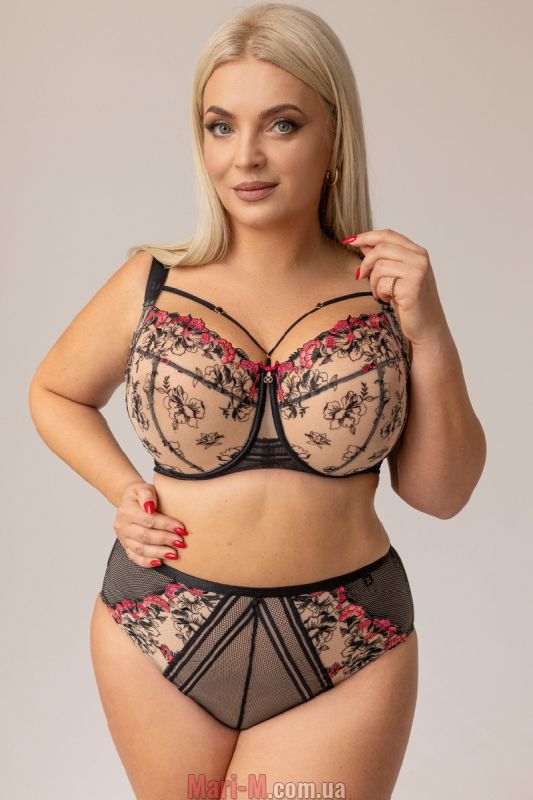 Высокие ажурные трусики слипы с вышивкой hight waist G-Flamenco Kris Line. Изысканные трусики слипы выполнены из ажурной эластичной черной сеточки, отделаны узкими кантами, на передней детали украшены кружевными вставками с черно-алой цветочной вышивкой на бежевом фоне. Трусики на подкладке из прозрачной телесной микросетки. Тонкая плоская резинка в поясе. Высокая линия талии. Хлопковая ластовица, комфортные плоские швы. Трусики красиво подчеркивают талию, маскируют недостатки фигуры в области живота. Состав: 80% полиамид, 10% эластан, 5% полиэстер, 5% хлопок.