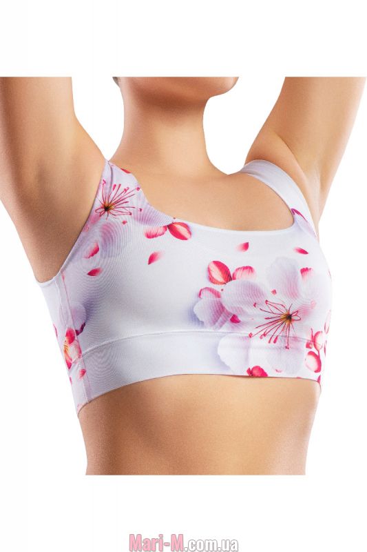 Бесшовный топ Crop Top Petals Mememe. Комфортный мягкий топ из гладкой, эластичной и очень нежной ткани с цветочным принтом из коллекции Sacura Dreams. Модель без выделенных чашечек, косточек и застежек, с широкими эластичными бретелями. Плоские швы, незаметные под одеждой. Обработка краев – без резинок, которые врезаются в кожу. Топ пропускает воздух, быстро сохнет, сохраняет форму и яркость цветов после многократных стирок. Принты наносятся современным безопасным методом сублимационной печати. Состав: 83% полиэстер, 17% эластан. В подарок к топу идут одни трусики, на выбор.