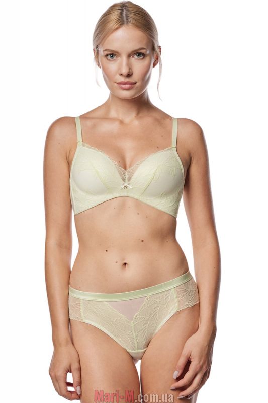 Кружевные бразилианы Janette Mefemi by Nipplex. Трусики выполнены из прозрачной эластичной микросетки и ажурного кружева с растительным узором и фигурным краем в нежном салатовом оттенке. Передняя деталь на подкладке из микросетки. Плоская атласная резинка в поясе. Заниженная линия талии, хлопковая ластовица. Состав: 60% полиамид, 16% полиэстер, 10% хлопок, 7% эластан, 7% другие волокна.