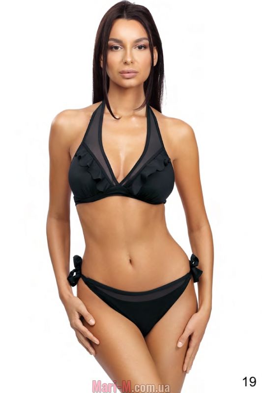 Раздельный купальник S1061WP1 Self. Стильный купальник с эластичными чашечками из тонкого поролона. Выполнен из однотонной микрофибры и эластичной микросеточки. Бюстгальтер без каркасов, завязывается на спине и на шее, чашечки декорированы оборками. В комплекте плавки бикини с завязками по бокам.