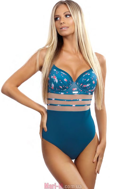 Слитный купальник S964A21 Self. Элегантный слитный купальник с нежным цветочным принтом на лифе, декорированный вставками из микросетки под грудью. Лиф с плотными формованными чашечками с эффектом пуш-ап на косточках. Тонкие бретели регулируются по длине. На спине небольшой треугольный вырез и застежка на крючок с регулировкой объема.