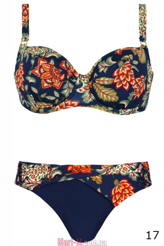 Раздельный купальник S994AC19 Self. Стильный и женственный купальник с оригинальным цветочным принтом в этническом стиле. Чашечки плотные, формованные. Бретели регулируются по длине. На спине застежка. Однотонные плавки слипы классической посадки с бочками средней ширины дополнены асимметричным поясом в тон бюстгальтеру.