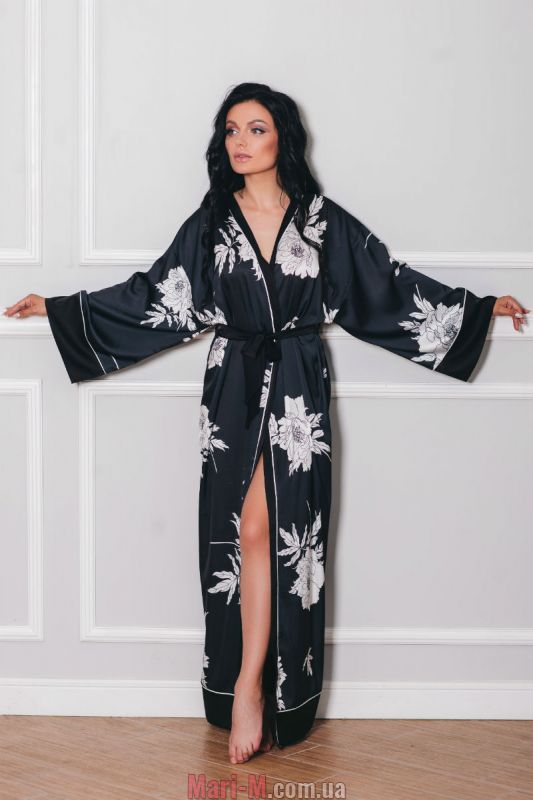 Длинный атласный халат с цветочным принтом 1511/1 Shato