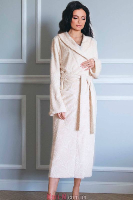 Длинный флисовый халат с тисненым цветочным узором 1538 Shato