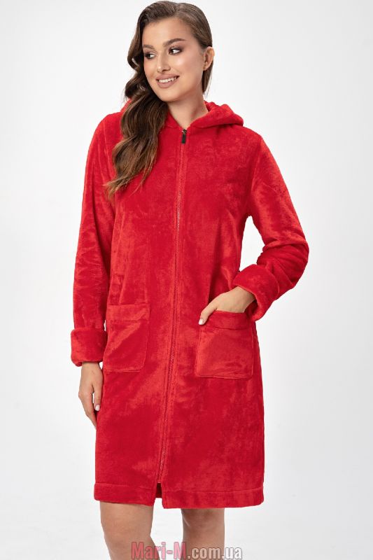 Флисовый халат на молнии с капюшоном 2530 Shato. Удобный теплый женский халат из мягкого пушистого флиса. Модель прямого кроя, с длинными рукавами и уютным капюшоном. Застегивается на молнию. По бокам на уровне бедер накладные карманы. Рукава с отворотами. Состав: 100% полиэстер (флис-махра).