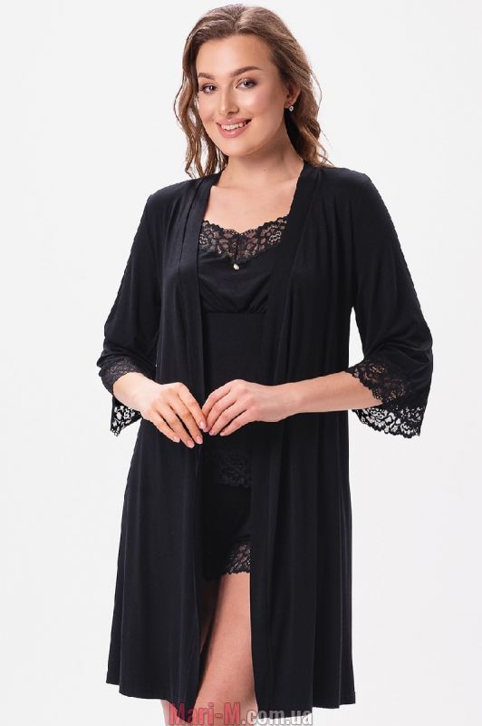 Халат из вискозы с кружевом 2621/1 Shato. Халат выполнен из мягкого и приятного вискозного трикотажа и украшен нежным цветочным кружевом с фигурным краем по низу рукавов. Модель классического кроя на запах под пояс, с прямыми рукавами длиной ¾. Состав: 95% вискоза, 5% эластан. Пижама и сорочка в комплект не входят. Их можно приобрести отдельно по ссылке ниже на странице, в товарах Для комплектации.
