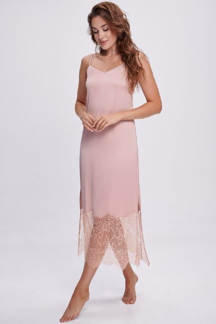 Длинный атласный халат с кружевом 2702/1 Shato